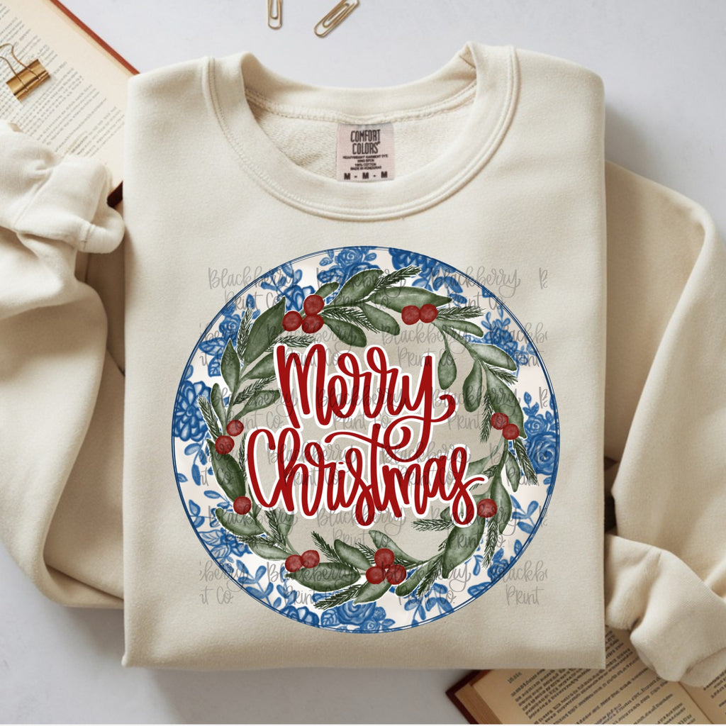 DIGITAL DOWNLOAD Blue Willow Christmas Wreath