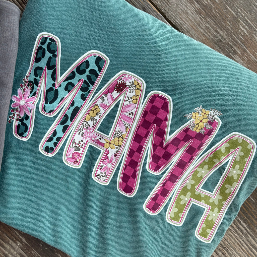 Personalized tees! Colorful design featuring a hand drawn design and hand lettering. Printed on a Comfort Color t-shirt.